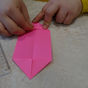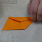 Denn der nächste Schritt ist, es wieder zu öffnen, um die Ecken des großen Rechtecks so genau es geht bis zum Knick zu falten und das bei allen 4 Ecken. Dann nochmal durch die zur Mitte gefalteten Ecken entstandenen Ecken (bis auf die beiden auf den kurzen Kanten) zur Mitte falten, bei den großen dann noch die so entstehende Raute zu einer Zacke auf einer Seite falten, indem Ihr die Ecken links und rechts nochmal zur Mitte faltet.